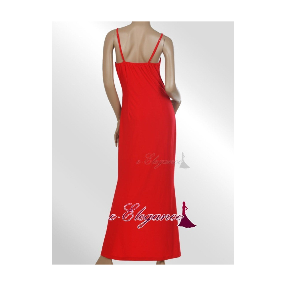 Elegantní společenské šaty s širšími vzadu překříženými ramínky, zdobené krajkou s červenými...