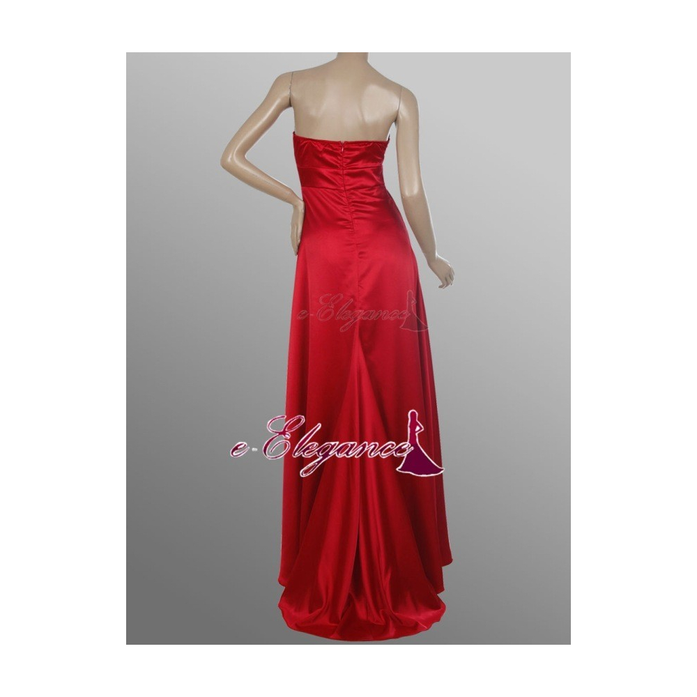 Elegantní dlouhé šaty bez ramínek, zdobené jemným nařasením na živůtku, sukně je vzadu prodloužena do malé vlečky.