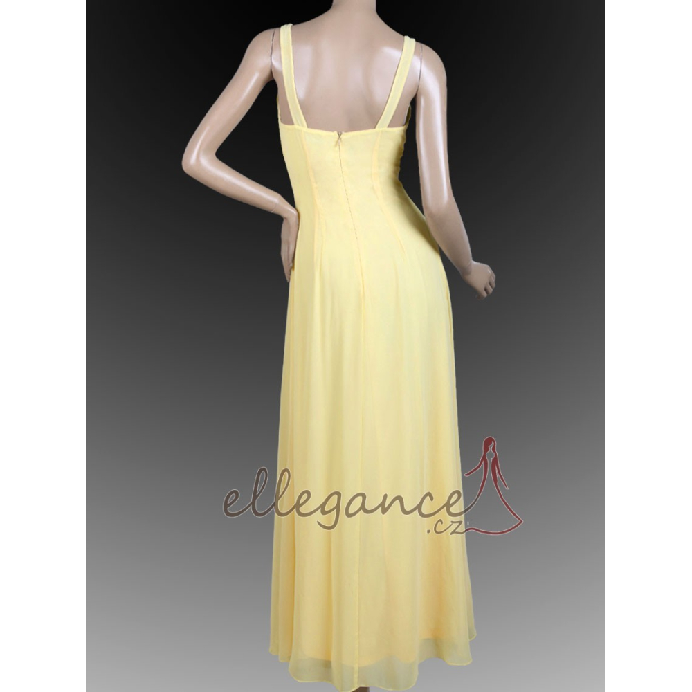 Šaty mají velmi slušivý střih, který skryje i drobné nedostatky přes bříško :-) Díky vrchní šifonové vrstvě působí velice elegantním a vzdušným dojmem. Ozdobné korálkové kameny jsou přišité (nejsou lepené).