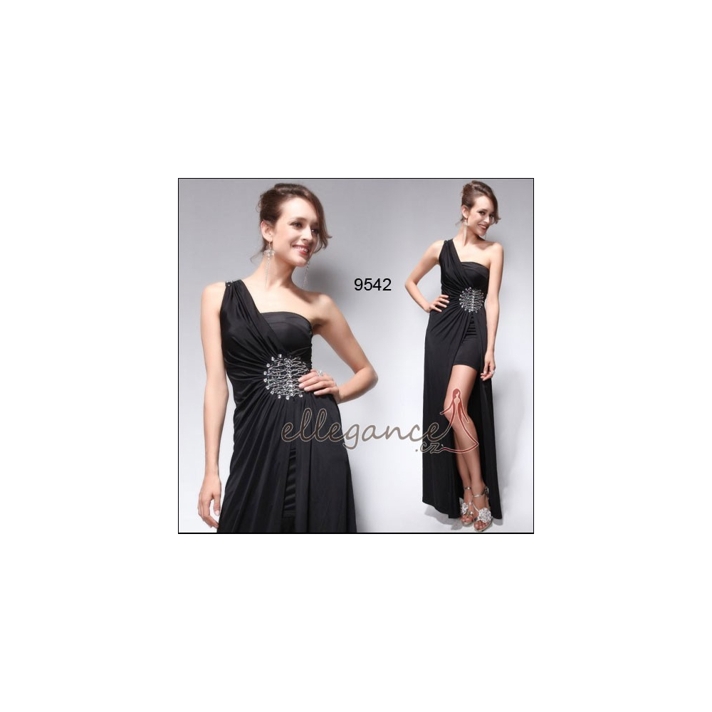 Elegantní společenské šaty asymetricky řešené s jedním ramínkem a rozparkem vpředu na sukni, na...