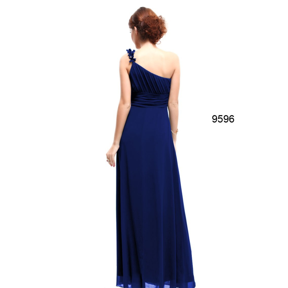 Elegantní dlouhé šaty asymetricky řešené s jedním širším ramínkem, zdobené štrasovou sponou a...