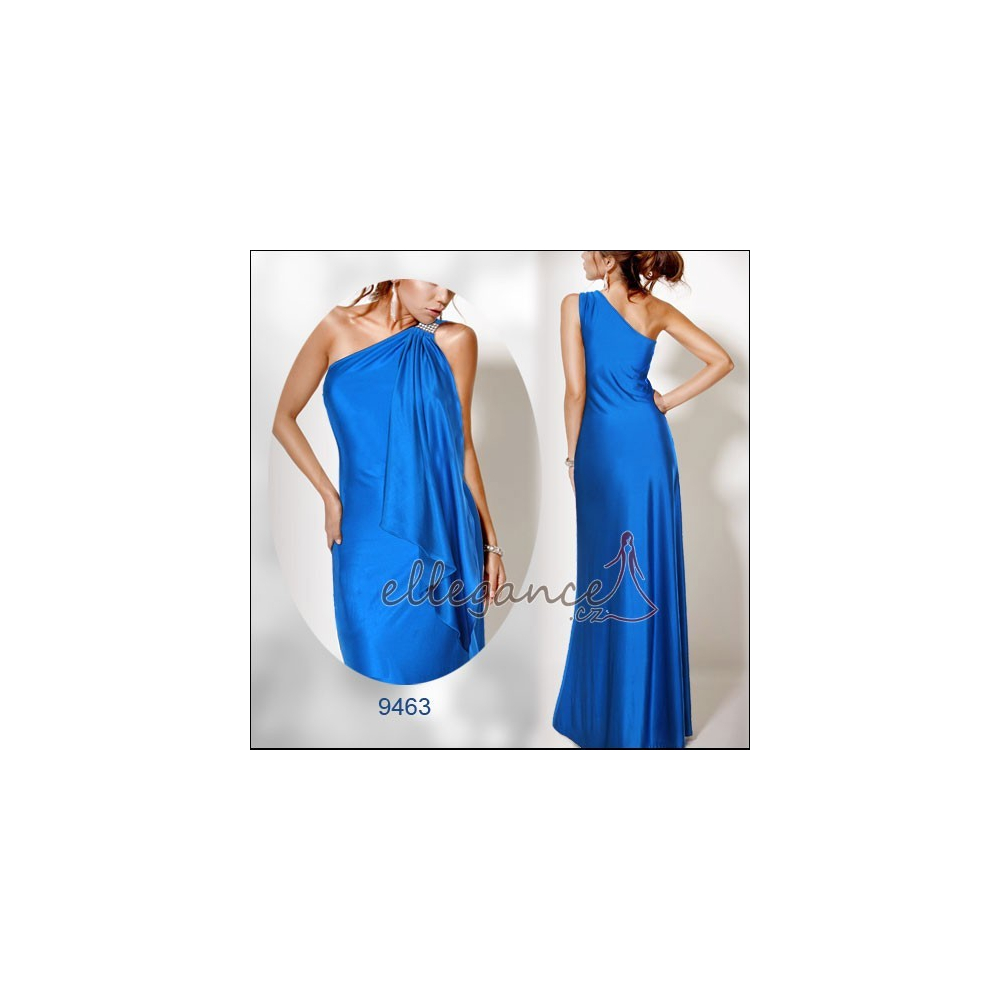 Elegantní dlouhé šaty asymetricky řešené s jedním širším ramínkem, zdobené štrasovou sponou a svislou šerpou.
