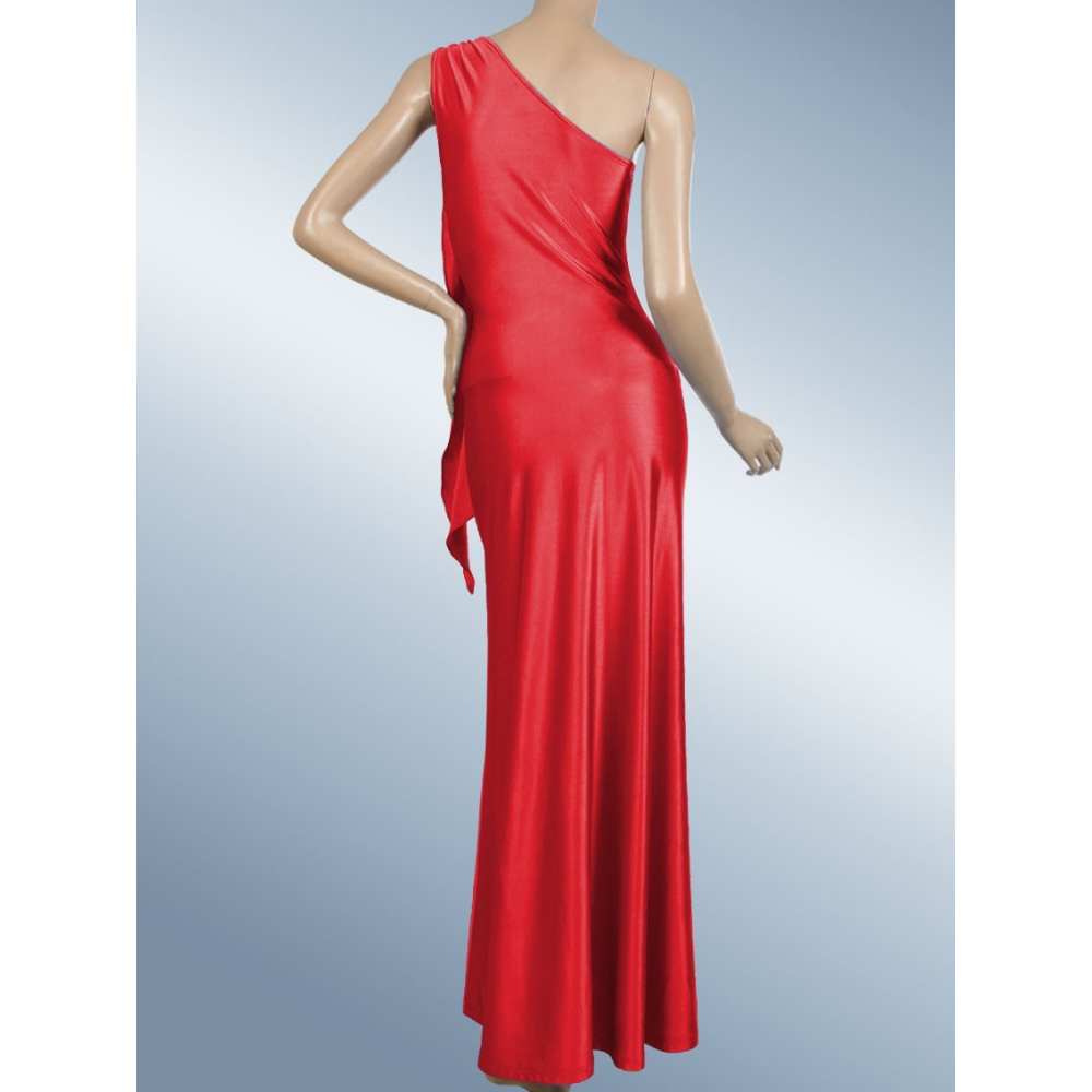 Elegantní dlouhé šaty asymetricky řešené s jedním širším ramínkem, zdobené štrasovou sponou a svislou šerpou.