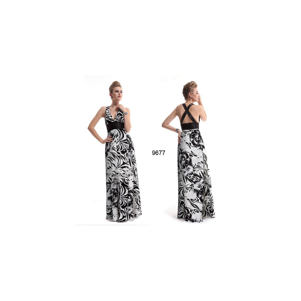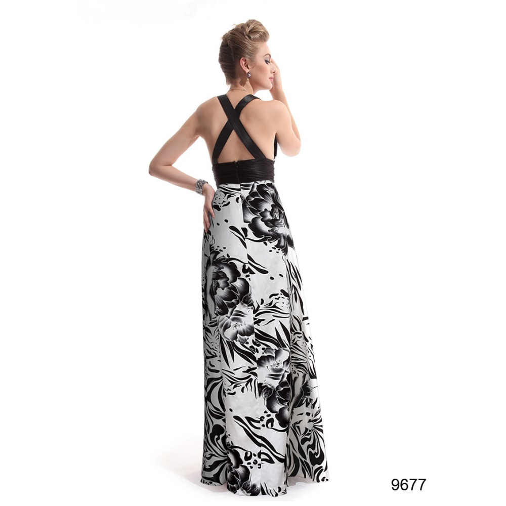 Dlouhé společenské šaty s efektně řešenými zády s několika překříženými ramínky, vpředu zdobené...