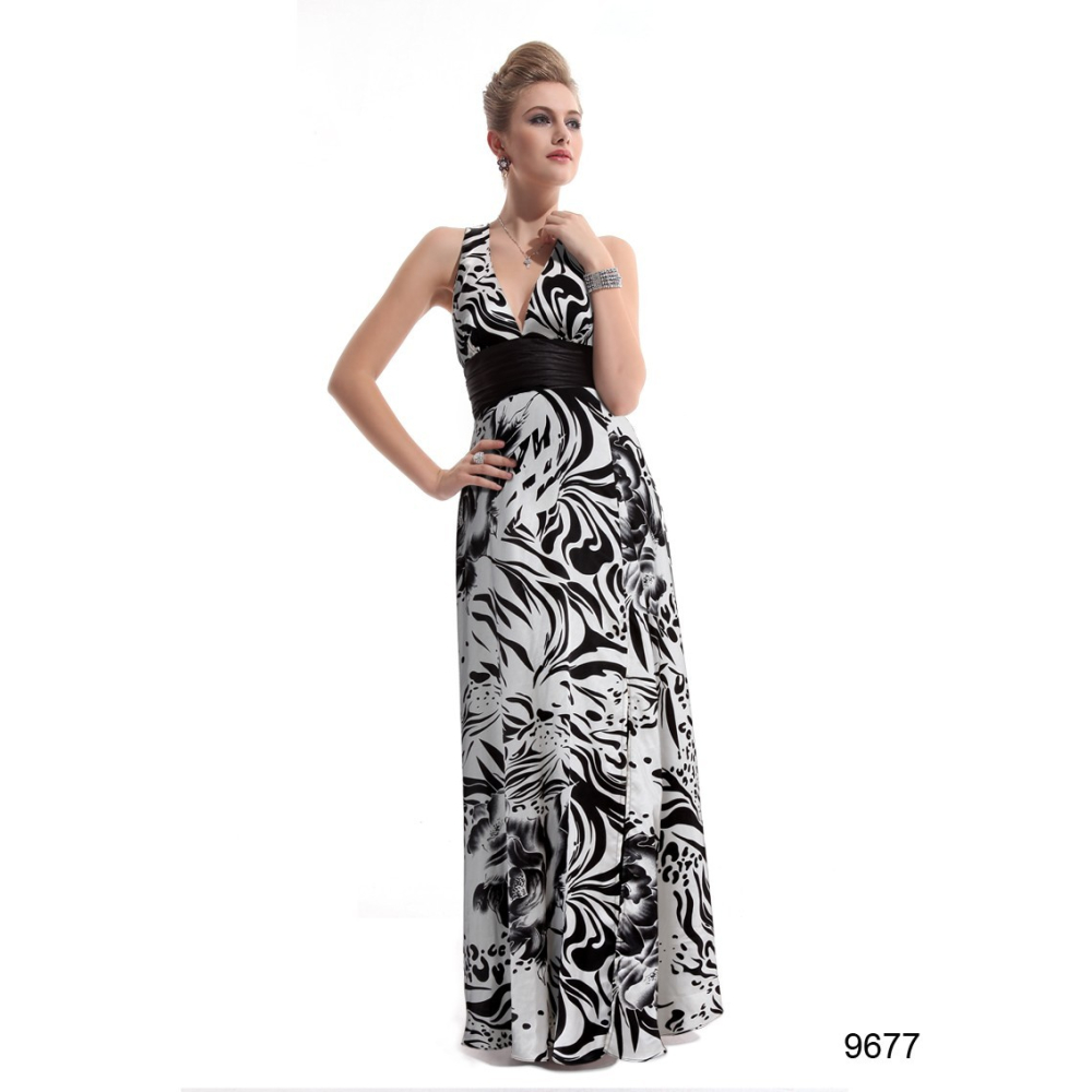 Elegantní společenské šaty se sexy výstřihem, širšími vzadu překříženými ramínky, v pase zvýrazněné širším černým páskem a vpředu rozparkem.