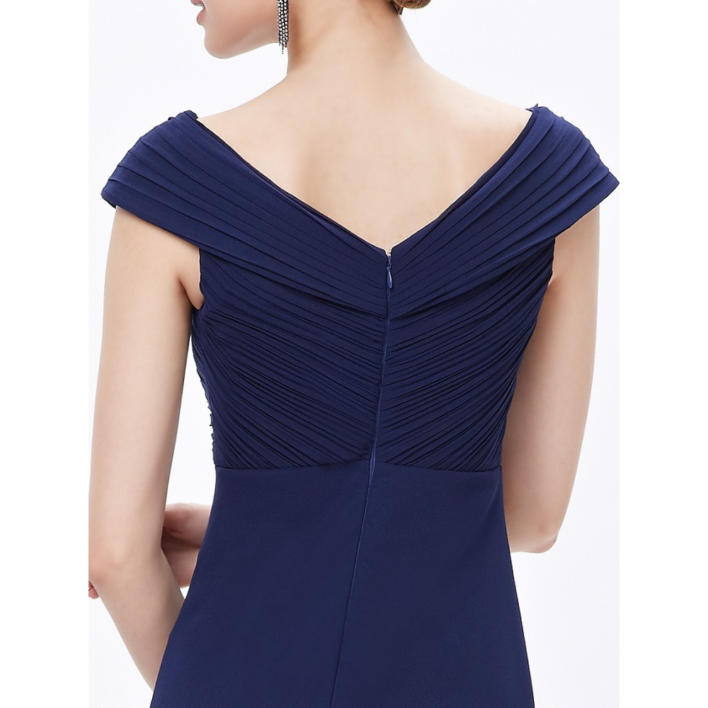 Elegantní společenské šaty v římském stylu, vpředu zdobené korálkovou aplikací. Barva: safírově...