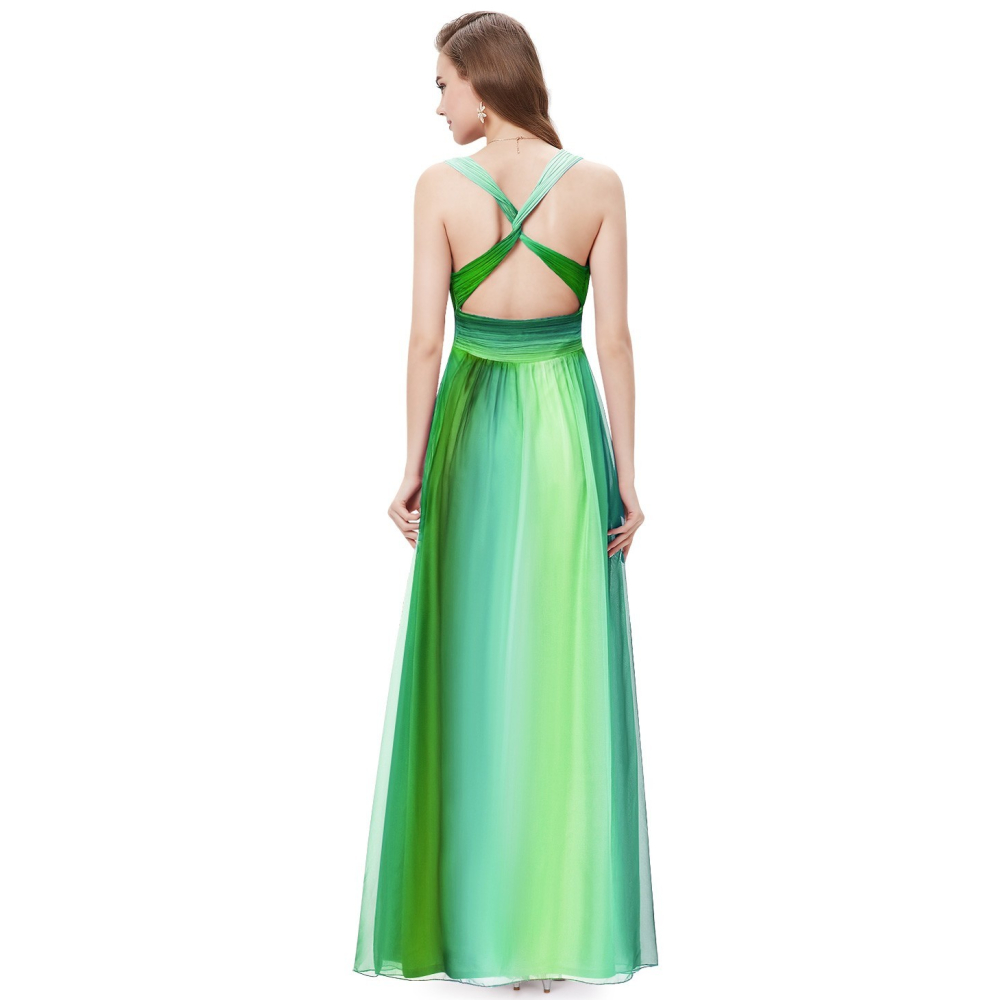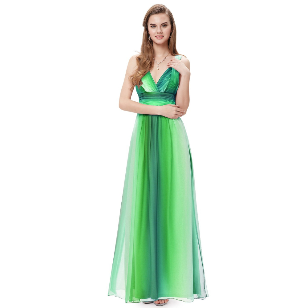 Elegantní společenské šaty s širšími ramínky, dvojitou šifonovou sukní a elegantním "V" výstřihem...