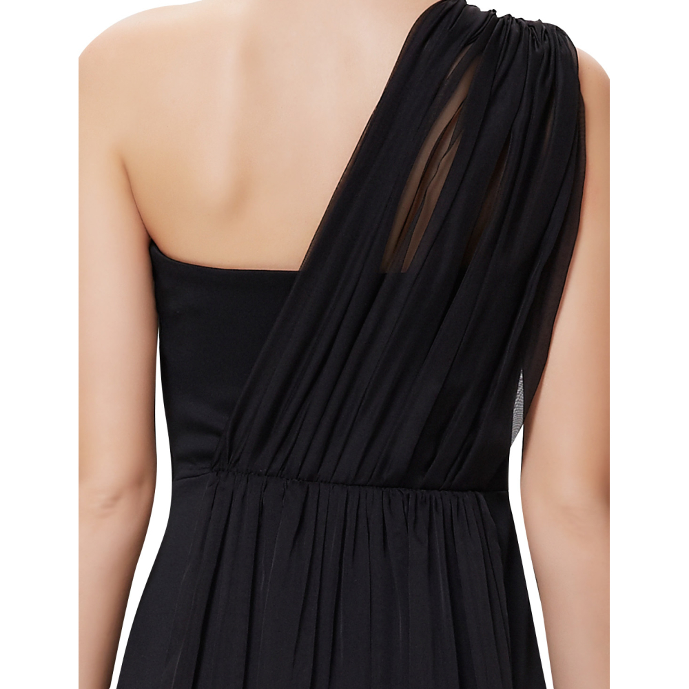 Elegantní společenské šaty, asymetricky řešené s jedním ramínkem, které vzadu přechází do malého šifonového závoje.