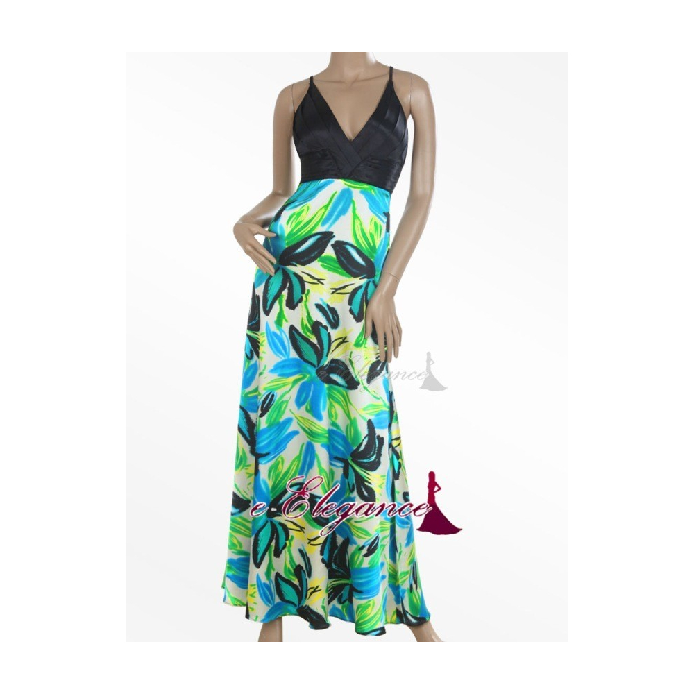 Elegantní společenské šaty s asymetrickou délkou sukně, s širšími ramínky a slušivým "V"...